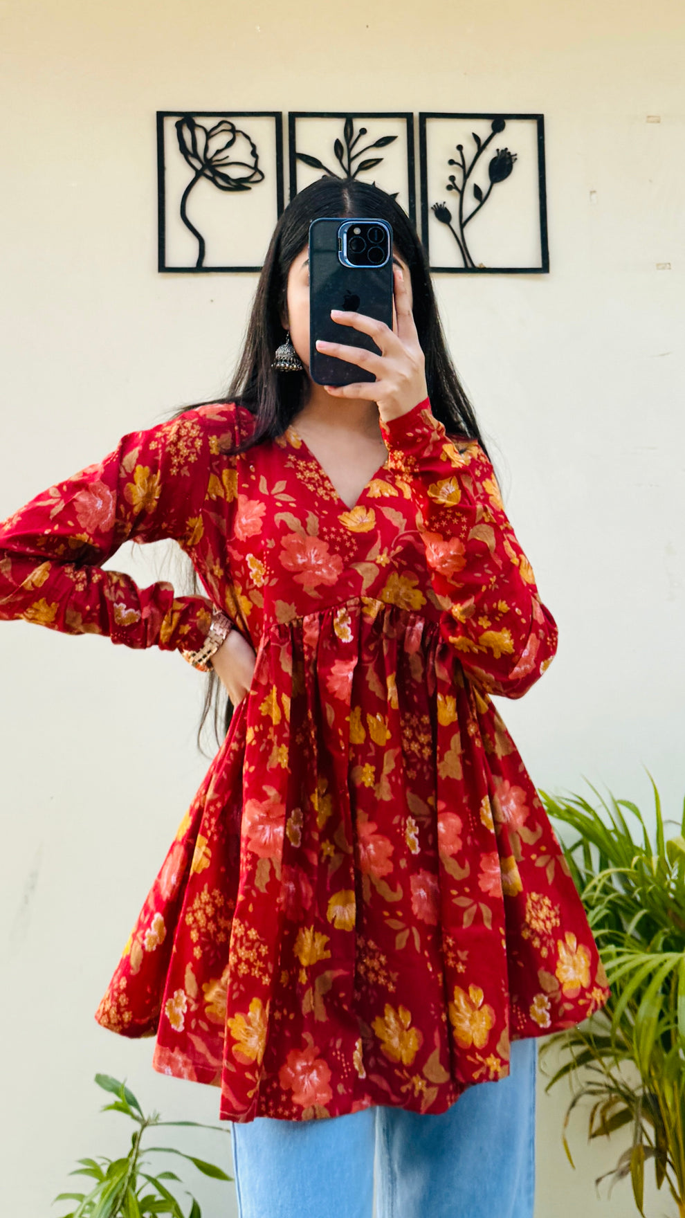 A Tiered Alya Cut peplum Top. It's perfect for all sessions and complements all body shapes. Designed for comfort, Pair it with Treggings for a stylish and cozy ensemble.