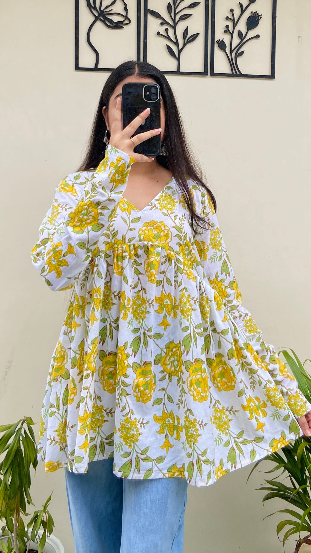 A Tiered Alya Cut peplum Top. It's perfect for all sessions and complements all body shapes. Designed for comfort, Pair it with Treggings for a stylish and cozy ensemble.