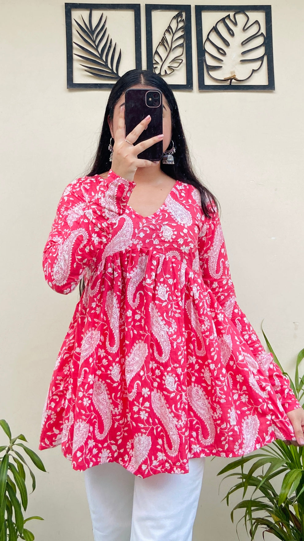Cotton Flared Pink Printed Aliacut Peplum Top