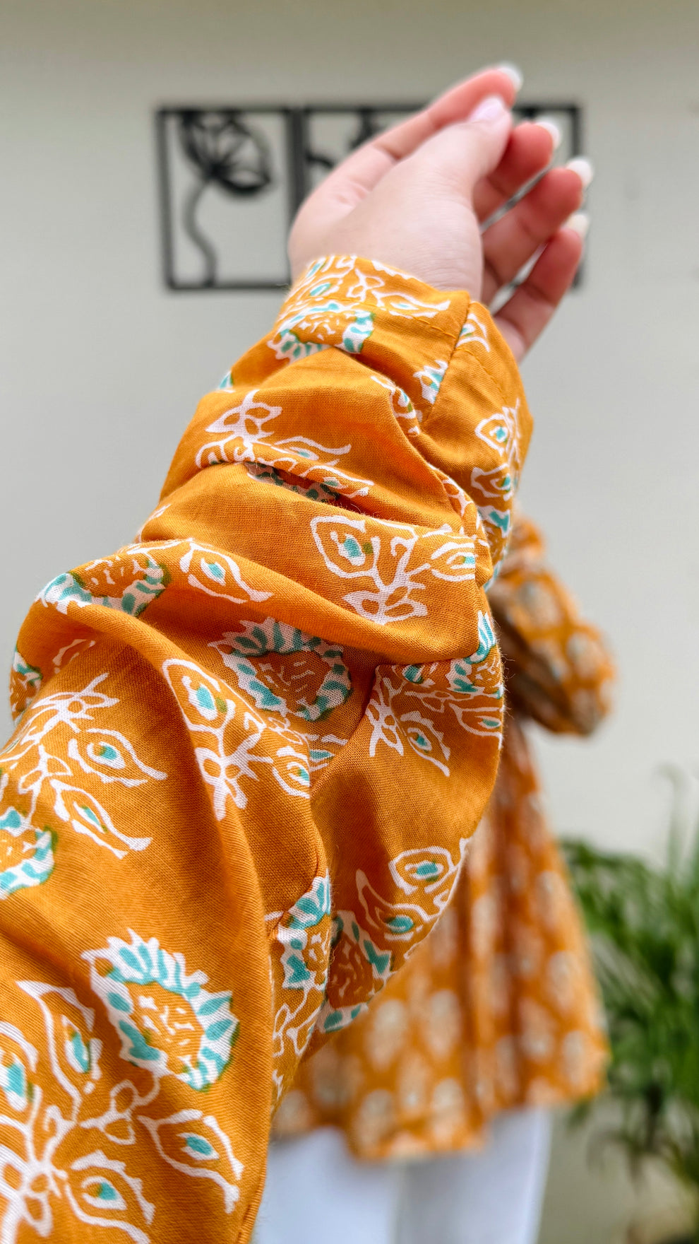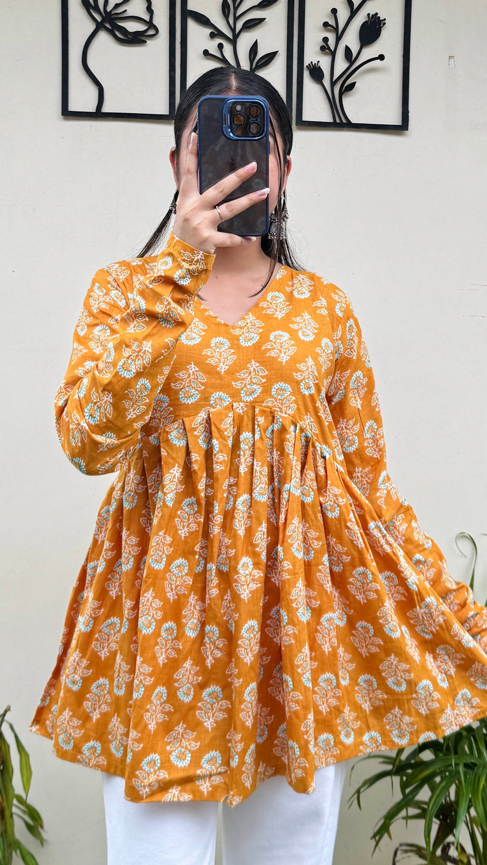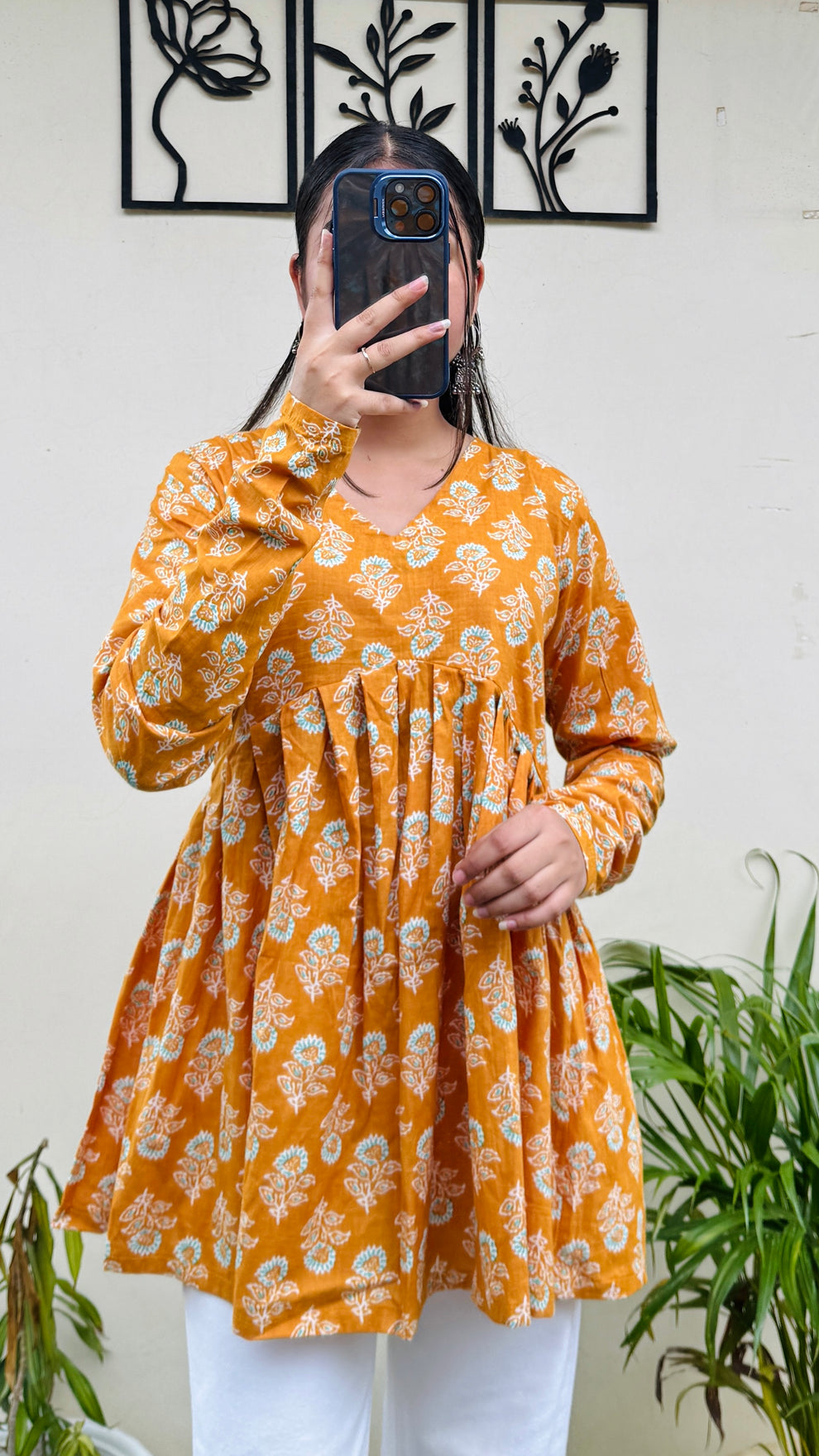 Cotton Flared Yellow Aliacut Floral Print Peplum Top