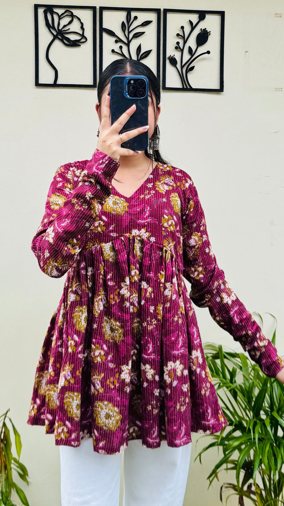 A Tiered Alya Cut peplum Top. It's perfect for all sessions and complements all body shapes. Designed for comfort, Pair it with Treggings for a stylish and cozy ensemble.