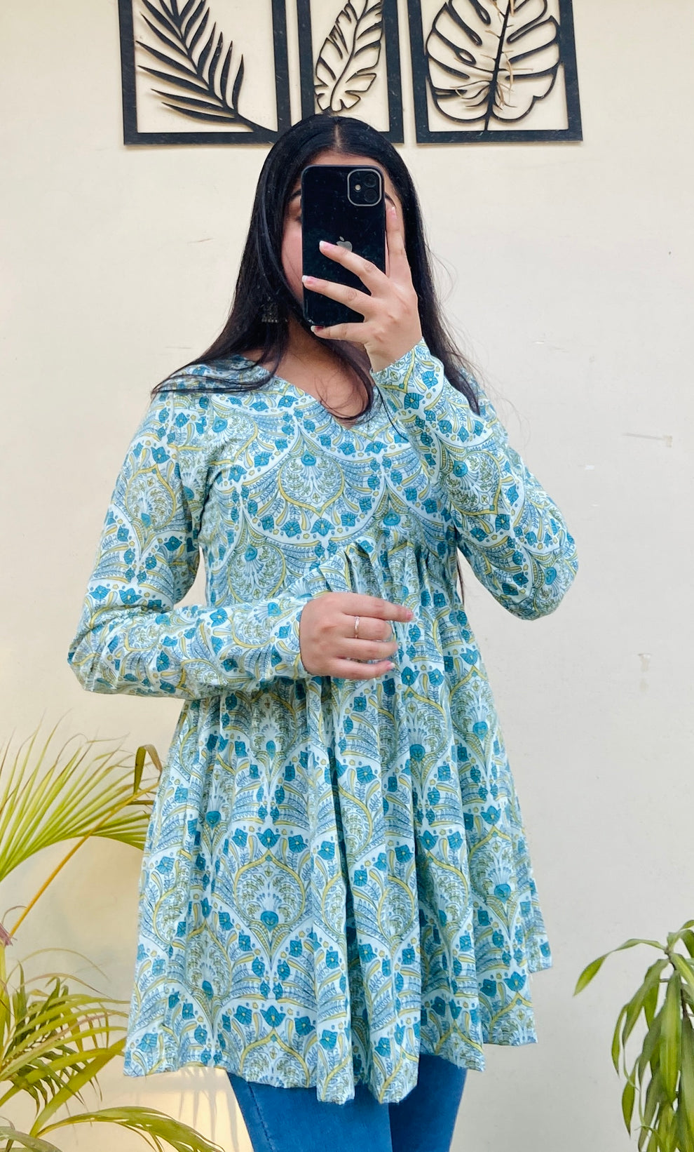 A Tiered Alya Cut peplum Top. It's perfect for all sessions and complements all body shapes. Designed for comfort, Pair it with Treggings for a stylish and cozy ensemble.
